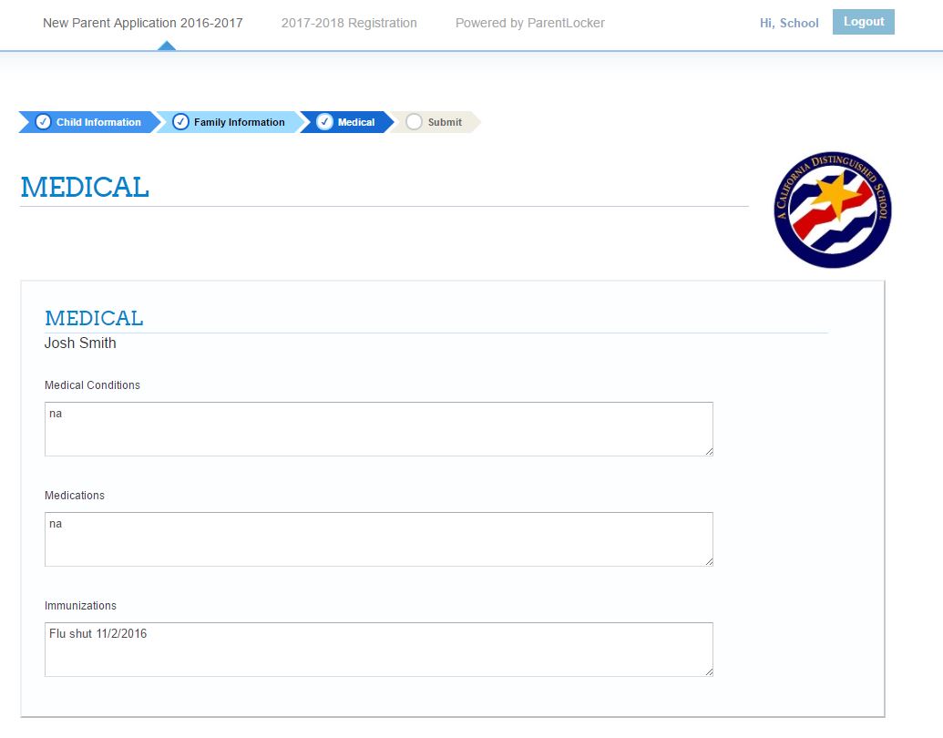 All the Admissions features have complementary functionalities for use with re-registration and enrollment of current parents and students. A Registration dashboard, registration forms, and reports exist for current parents as well.