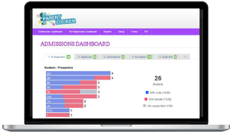 - The dashboard includes easy-to-read stats and charts, complete with updated numbers, helping your admissions staff analyze real-time admissions data.