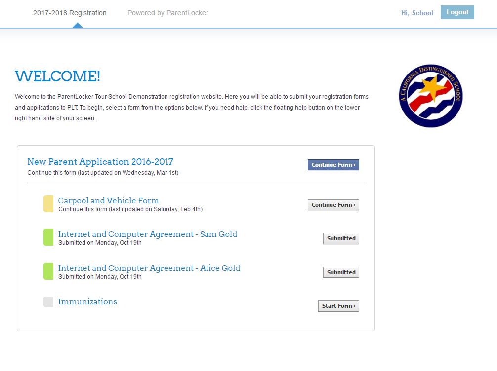 - Forms are pre-populated with the information you already have on file for the family and student, saving parents time.