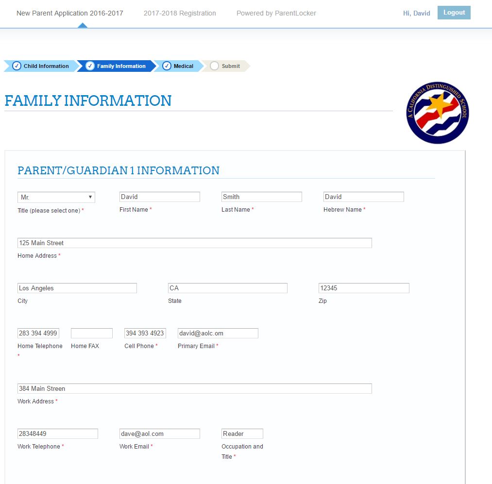 - Once submitted, the data inputted by the parent on the form automatically imports into their account in your ParentLocker database, so that your office staff doesn't need to type-in any data manually.